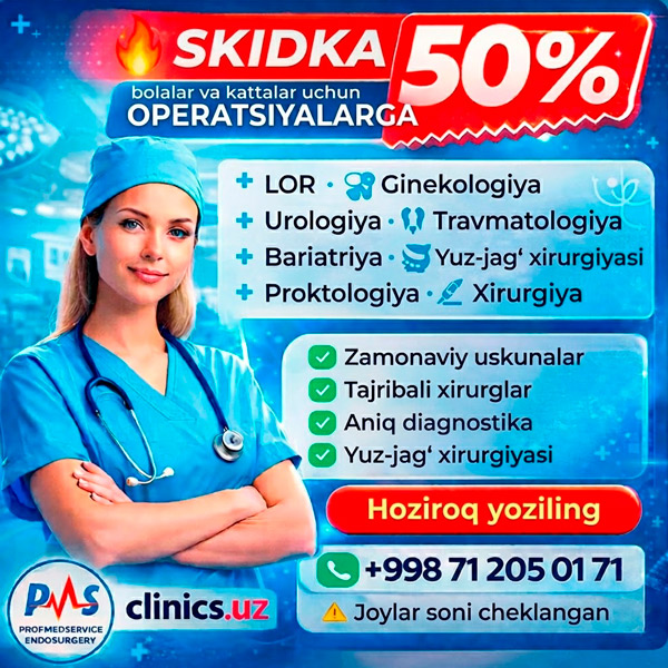 SKIDKA 50% OPERATSIYALARGA Prof Med Service Endoxirurgiya markazi klinikasida!
